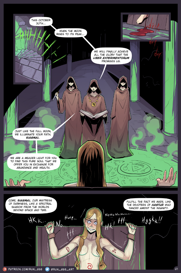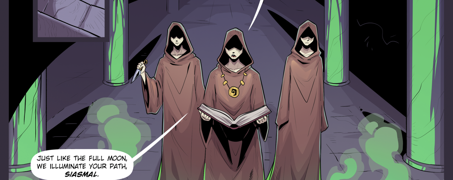 Unfair Pact is about a ritual of 3 cultists that doesn't have the result they expect. Siasmal is summoned for a pact, but the price she demands is higher than the cultists expected.